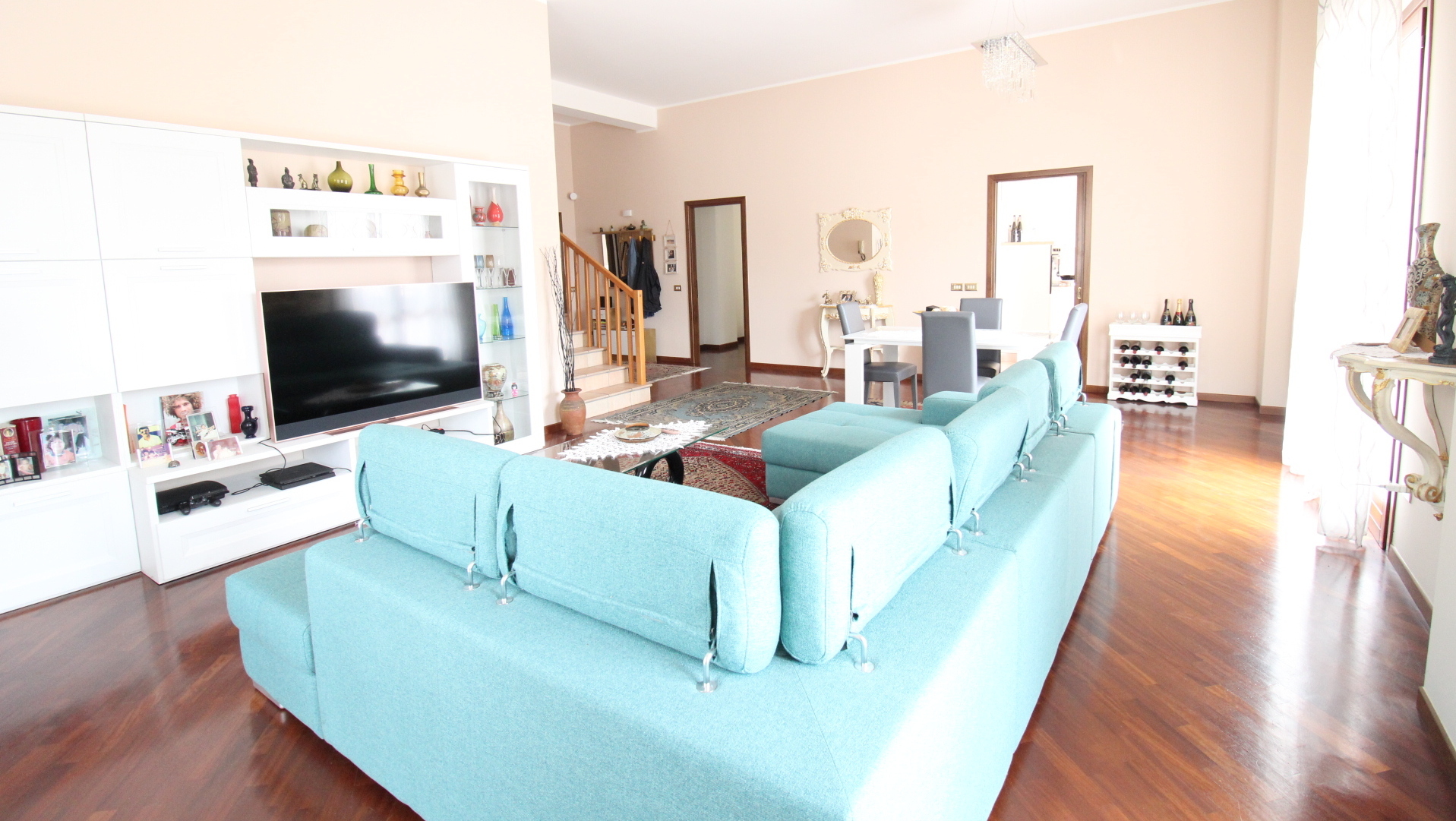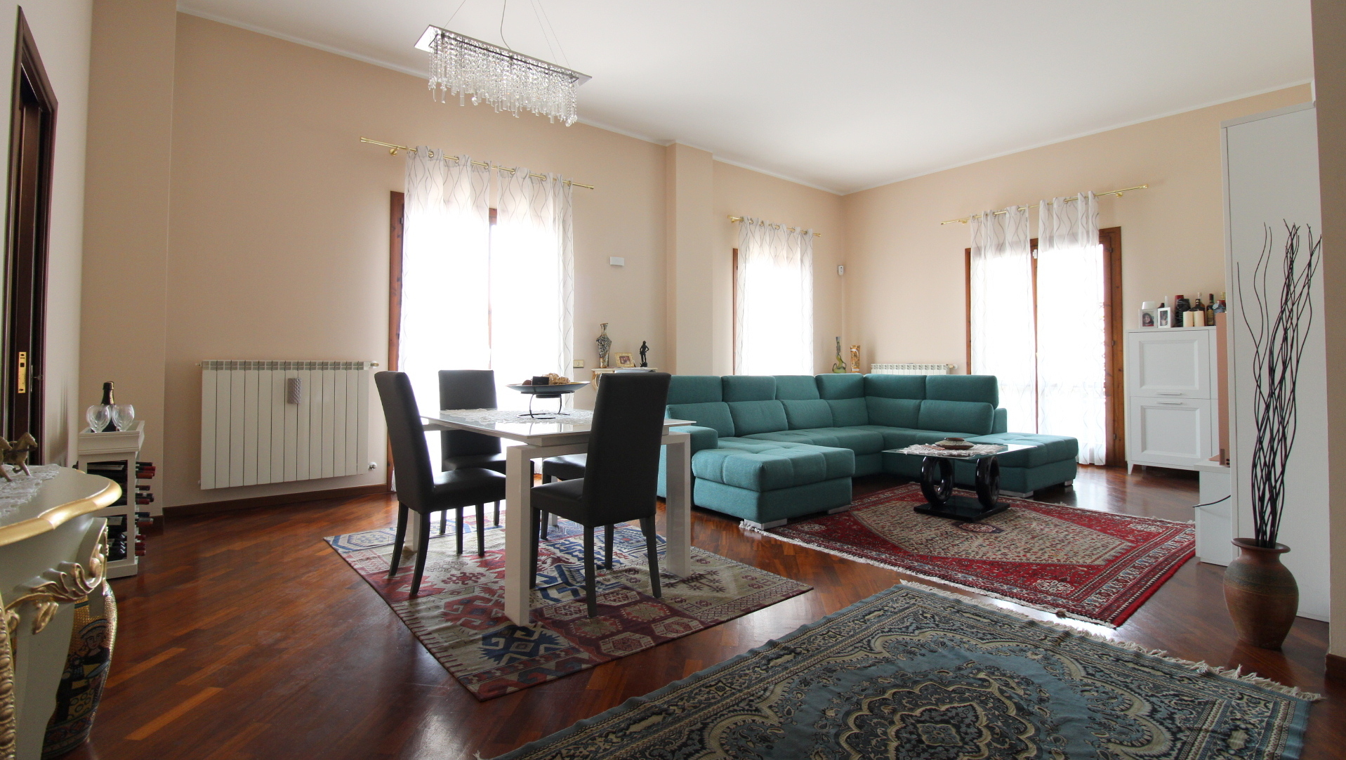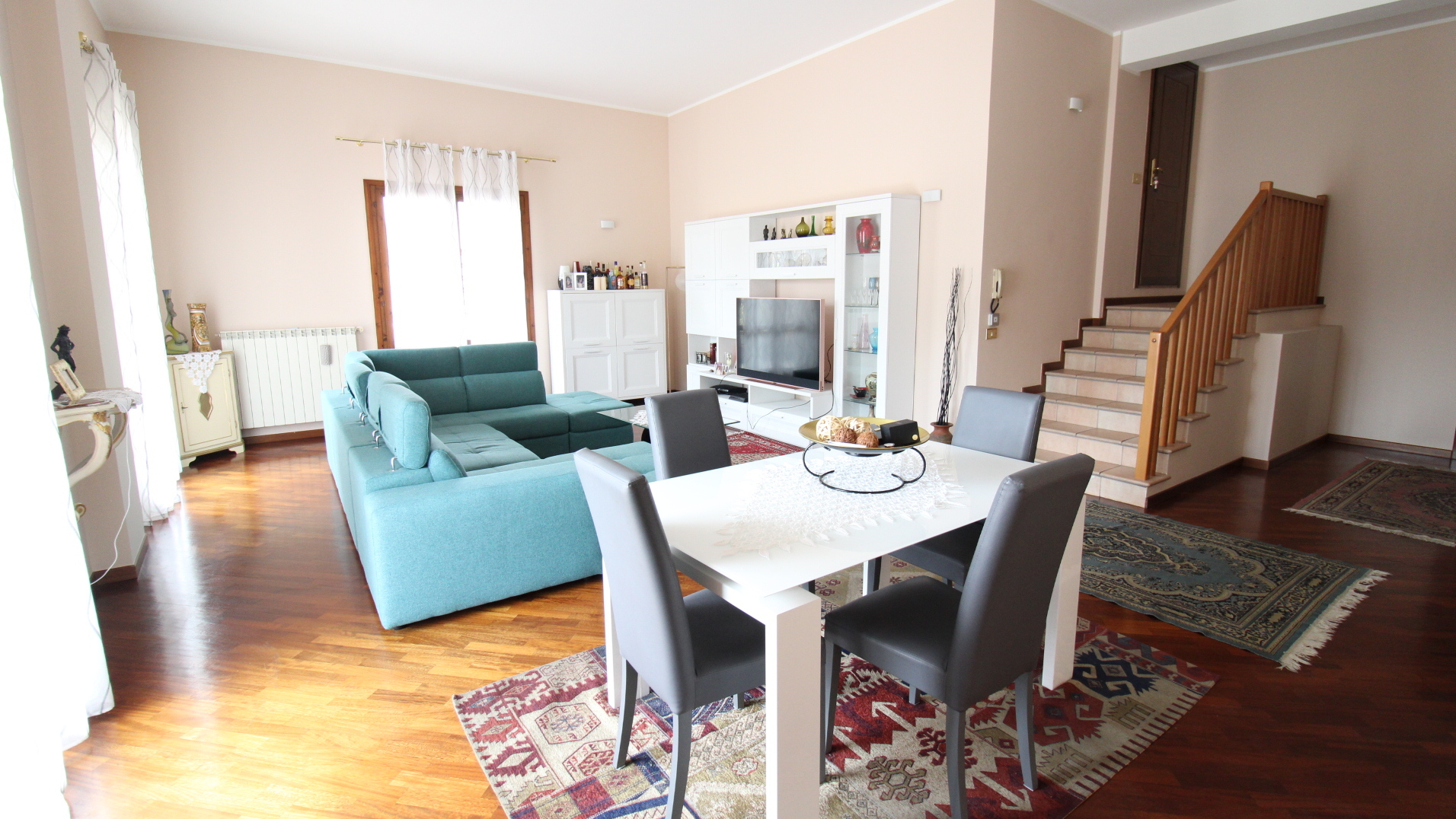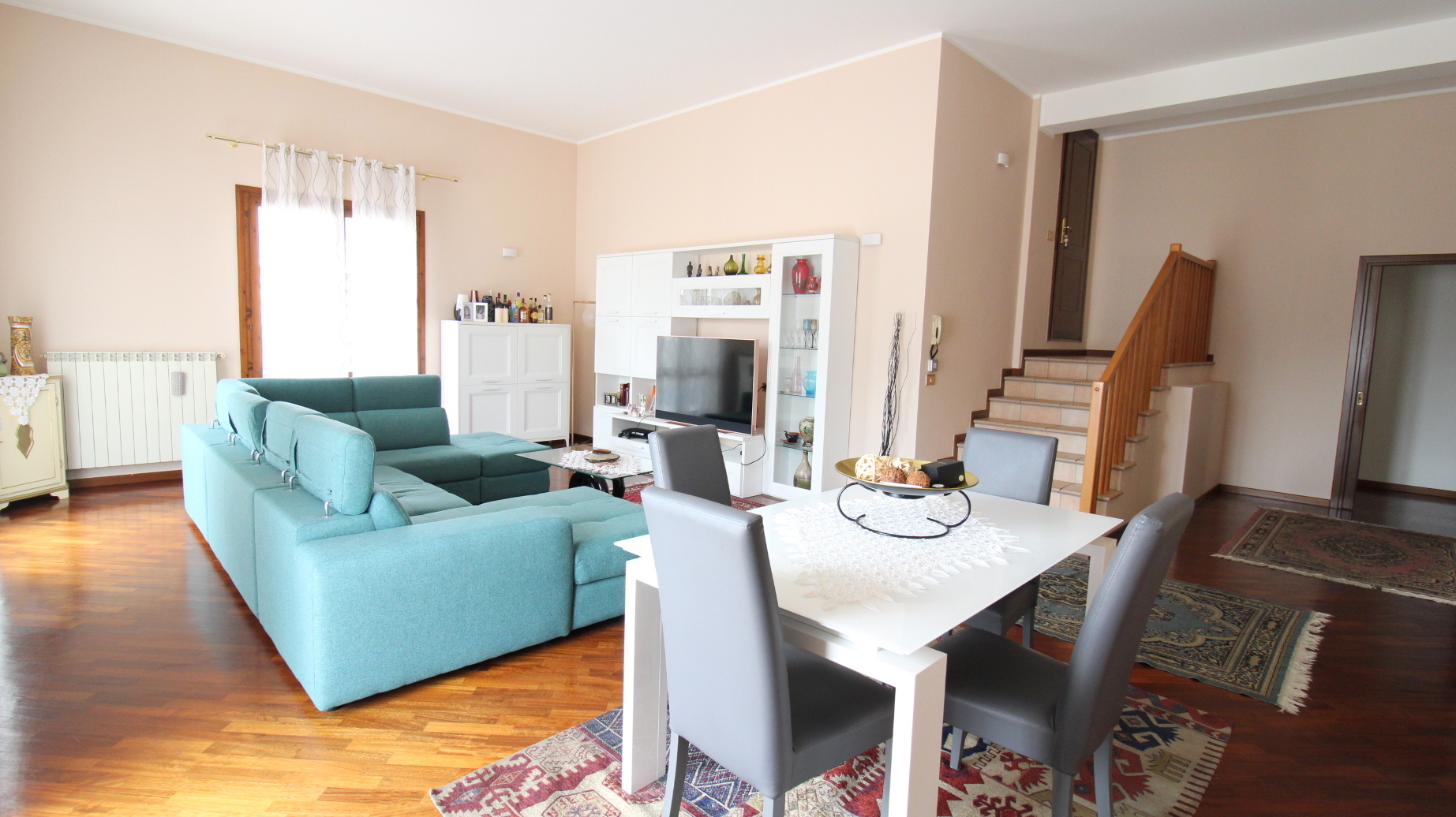 L’immobile si distingue per l’ingresso indipendente che conduce ad un’accogliente e luminosa zona giorno composta da ampio soggiorno con accesso diretto al terrazzo coperto e vivibile, perfetto per momenti di relax o convivialità all’aperto. La cucina è separata ed abitabile, spaziosa e funzionale, ideale per la vita quotidiana di una famiglia numerosa. La zona notte, impreziosita da pavimentazione in parquet, offre quattro camere da letto di generose dimensioni, tutte dotate di balcone, garantendo luminosità e comfort in ogni ambiente. Completano la proprietà due bagni con vasca e doccia, una comoda lavanderia interna ed un ripostiglio, elementi che rendono l’abitazione estremamente pratica e ben organizzata.